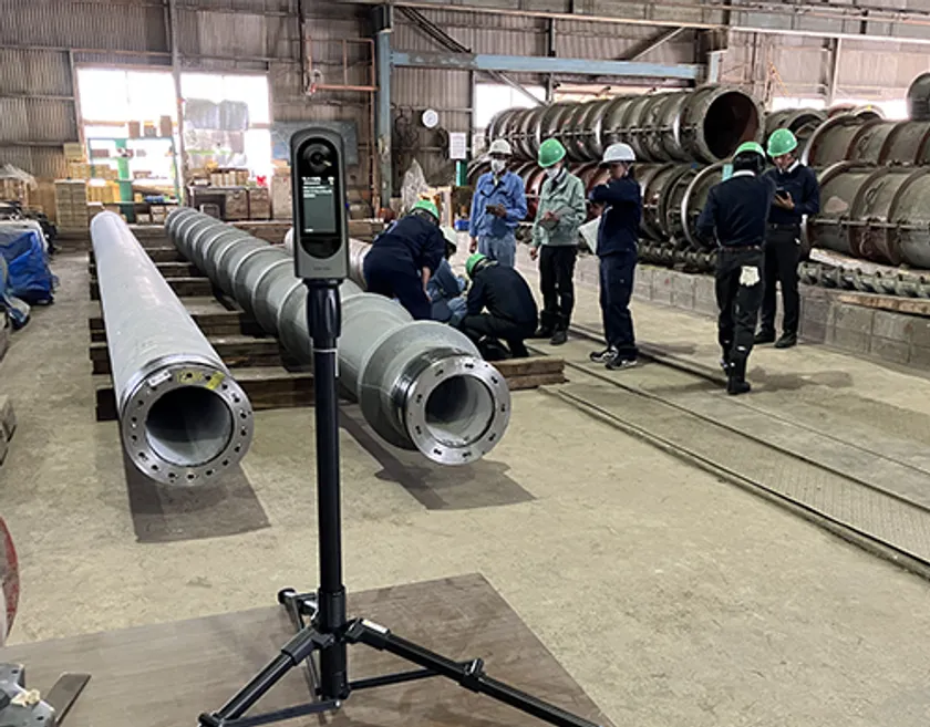 現場作業員が装着したウェアラブルカメラでミリ単位の測定結果を配信している様子