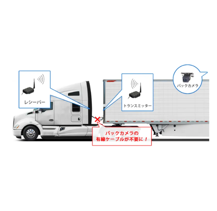 トレーラの切り離し作業を行う場合、有線カメラの渡りケーブルを破損してしまうことがあります。カメラを無線にすることで、ケーブルの切断やカプラの破損がなくなり、今まで破損の際に要していた、修理作業が不要になります。