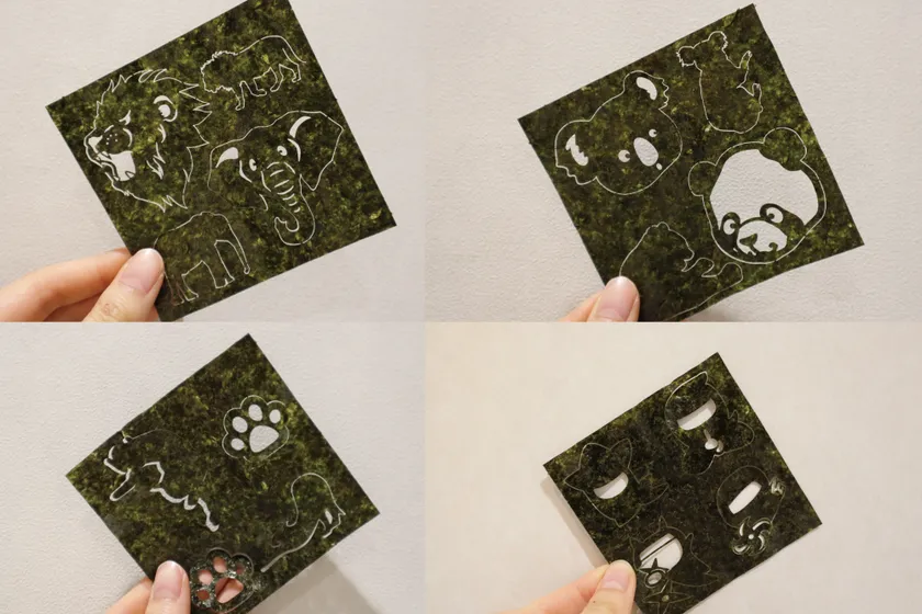 海苔は当社のレーザーカット技術を活用した「のりあーと(R)」を使用。デザインした海苔をつなぎ目から切り離すだけなので、お子さんでもチャレンジしやすいです。自由に海苔を飾ってお昼の時間を楽しんでもらいたいです。