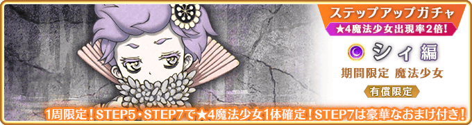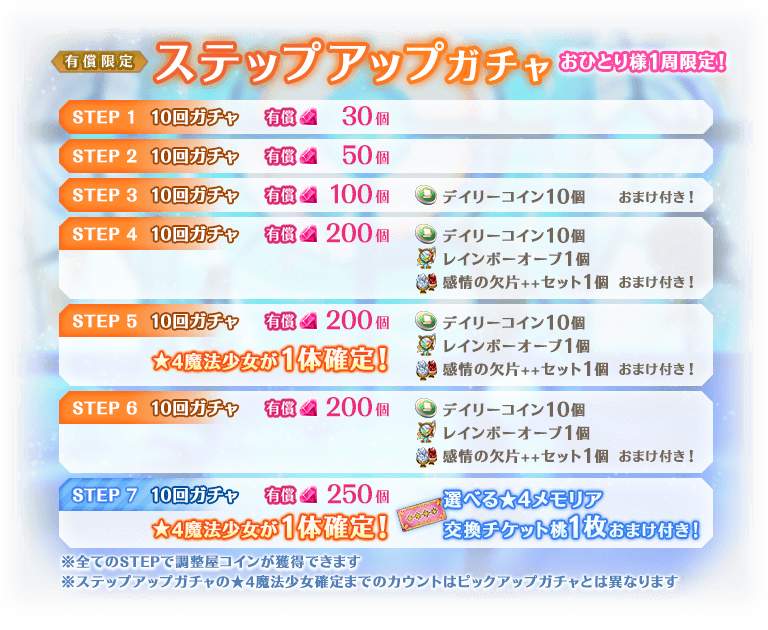 ※STEP5、STEP7での★4魔法少女について、ピックアップ対象の魔法少女が確定するわけではございません。