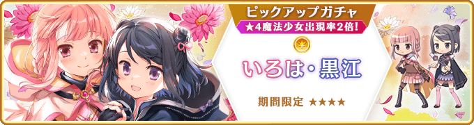 蒼樹うめ描き下ろしのキャラクターが多数登場するスマートフォンゲーム『マギアレコード 魔法少女まどか☆マギカ外伝』(iOS/Android/Windows向けアプリ 基本プレイ無料 ※一部アイテム課金あり)は、5月10日16:00より、『期間限定 いろは・黒江 ピックアップガチャ』『期間限定 シィ ピックアップガチャ』『有償限定 ステップアップガチャ いろは・黒江編』『有償限定 ステップアップガチャ シィ編』とイベント『Last Bird's Hope』の開催を予定しております。