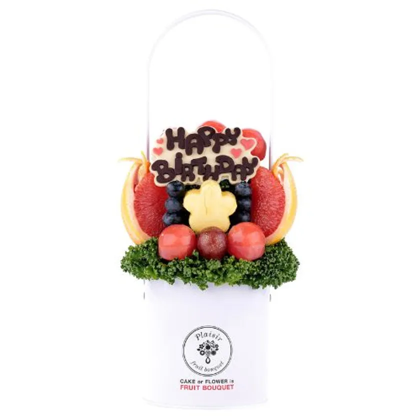「一年に一度のお誕生日が特別な日になりますように!」をテーマにデザインした特別なフルーツブーケです。