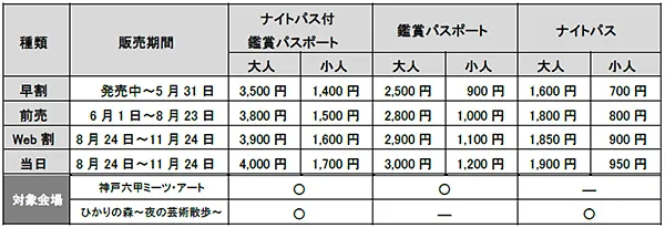 ※ROKKO森の音ミュージアム、六甲高山植物園、トレイルエリア(一部会場)、風の教会エリアは有料会場
