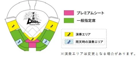 ただし、雨天等の影響により演奏エリアを内野スタンド上段等に変更する場合があります。