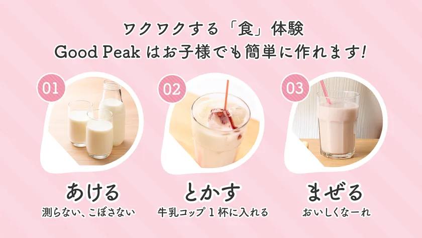 美味しいから飲みたくなる。牛乳嫌いな子でもGOOD PEAKだから飲みたいに変わる!