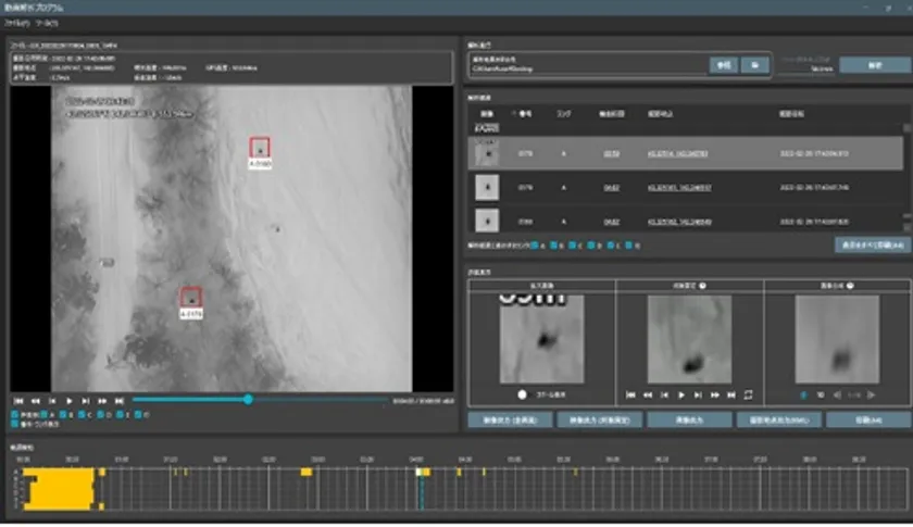 ドローン映像の目視チェックだけでは対象を見落としやすい…本ソフトウェアは熱源の検出を行うことが可能!ドローンで撮影した赤外線動画をPCに取り込むだけで、熱源を自動で検出、マーキングし、位置情報をPDF出力やGoogleマップに表示できます。