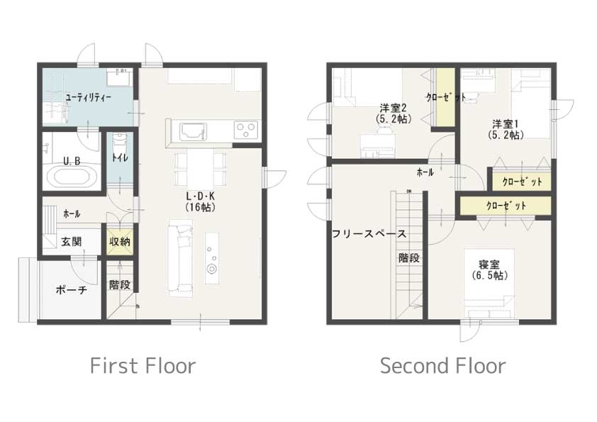 ・延べ床面積:89.43㎡(27.05坪)、1階:43.06㎡、2階:46.37㎡