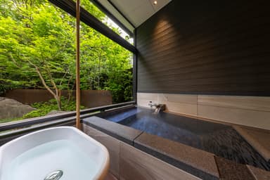 本館 紅梅亭の大浴場・露天風呂もご利用可能。館内で気軽に湯巡りをお楽しみいただけます。