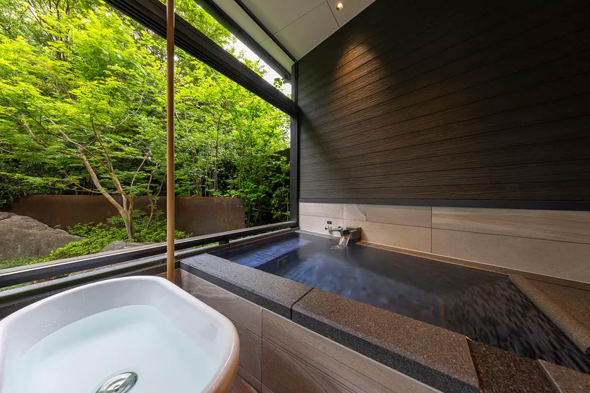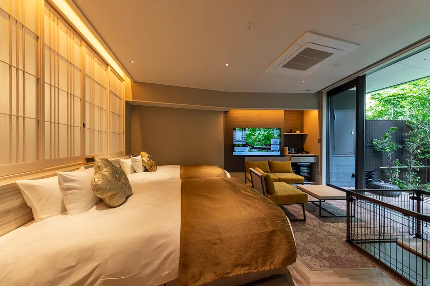 全4室の和モダンを基調とした和洋室には、旅の疲れを癒す「客室露天風呂」ほか、テラス併設の「プライベートドッグラン」をご用意。