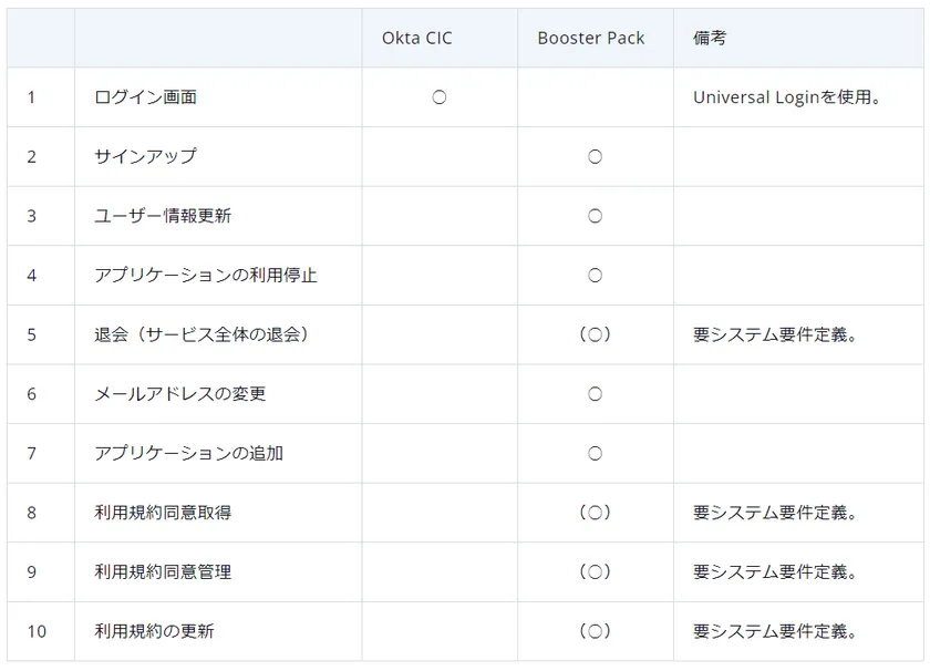 ※ メールアドレス変更は、Okta CIC単体としては対応可能ですが、連携アプリケーション側での対応も必要となるため、システム要件定義を行う前提とします。