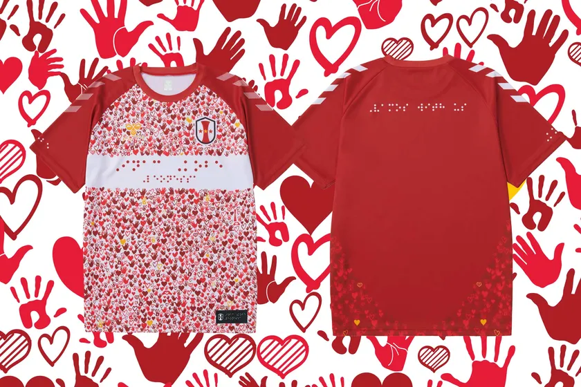 デンマークのスポーツブランドhummel(ヒュンメル)は、INAC神戸レオネッサとホームタウンの視覚障がい者支援に繋げる点字シャツを発表。5月2日に行われたHOMEゲームで選手たちがウォーミングアップなどで着用しました。