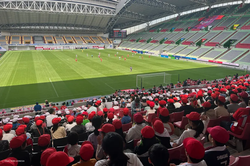5月2日にノエビアスタジアム神戸で行われた2023-24 WEリーグ 第18節ちふれASエルフェン埼玉戦は、INAC神戸レオネッサが、神戸子ども応援デーとして開催。幼稚園・保育園から中学校、支援学校まで神戸市の20校約2,000名が来場し、大声援を送りました。