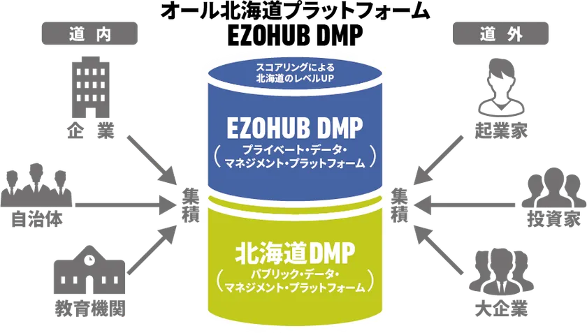 「EZOHUB TOKYO」は道内自治体/企業/教育機関の都内拠点として、またこれらステークホルダーとの出会いや共創を目指す皆さまとの出会いの場です。ワークプレイスやイベント会場といったハード的要素に加え、EZOHUB DMP(※2)の構築によるデータベース活用などオンラインとオフライン双方において「北海道と日本をつなぐ“出島”」の役割を担っていきます。