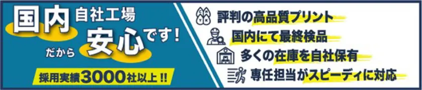 国内自社工場で高品質なオリジナル グッズをスピーディーに制作いたします