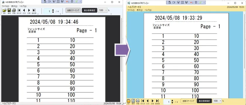 ver 9までは「表示倍率の指定」しか行えませんでしたが、ver 10では「自動スケーリング」が追加されました。「自動スケーリング」トグルボタンを選択することで、ウィンドウのサイズに合わせて自動的にページ全体が収まるように印刷プレビューを行える機能が追加されました。