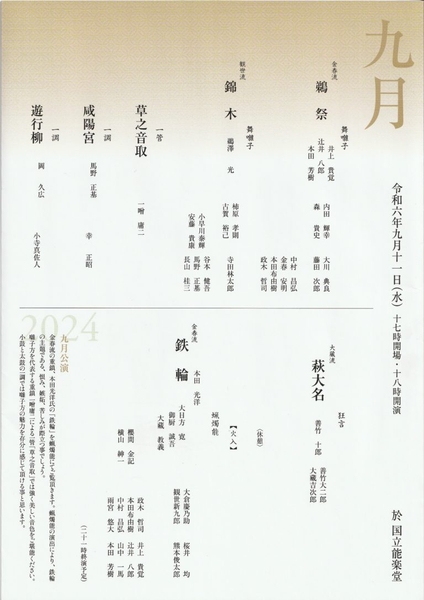 『東京能楽囃子科協議会 9月定式能』