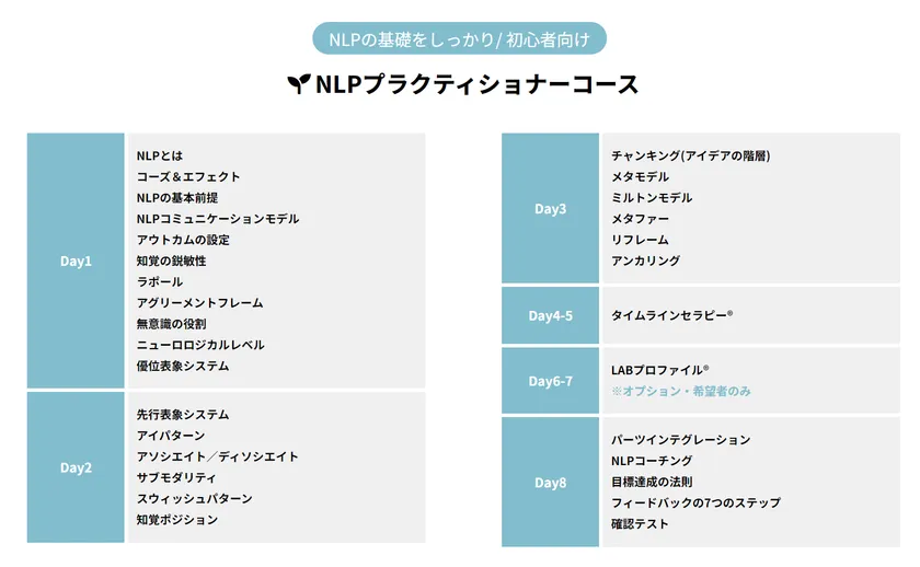 ※「NLPマスタープラクティショナーコース」に関しましては、今後募集開始予定となっております。