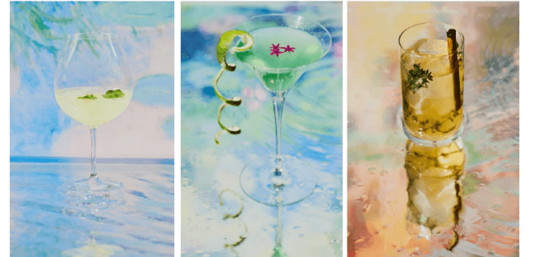 印象派の巨匠であるクロード・モネの連作〈睡蓮〉より着想し、ジヴェルニーの庭を舞台に朝・昼・夜とうつろいゆく時の美しさをイメージした新作カクテル3種類をご用意しています。なお、それぞれのカクテルは、ノンアルコールでもご用意しています。