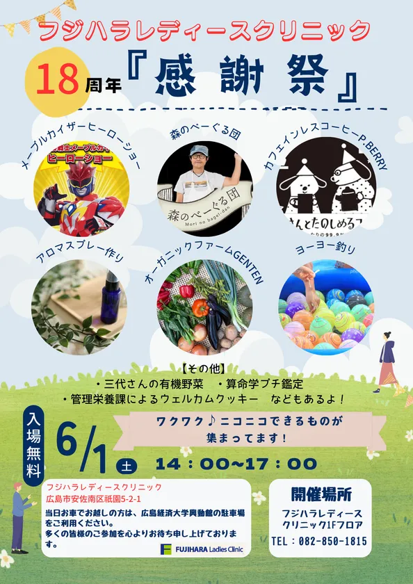 広島市の産婦人科「フジハラレディースクリニック」で 開院18周年を記念した『感謝祭』を6月1日(土)開催!