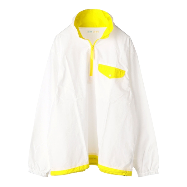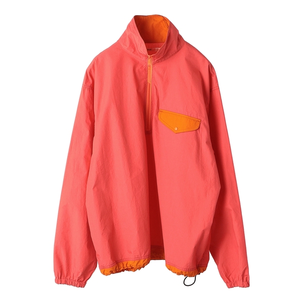 今回の別注では、コットンタイプライター素材を使用したハーフジップブルゾン1型をホワイト×レモンイエロー、サンゴピンク×キャロット、ブルー×ダークパープルの計3色で展開。