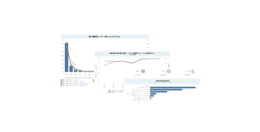 国内最大級の消費者購買DBを活用し、メーカーや小売りなどのマーケティングを支援するサービスです。レシートに記載された購買情報を活用しているため、POSやID-POSデータで開示されていない小売りチェーンのデータや、個のユーザー(シングルソース)に紐づいた、業態を横断した購買行動や併売商品など断続的な購買行動を把握できます。