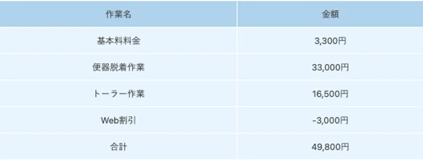数日間放置した後にトイレがつまったため、便器を床から外しておもちゃを取り出し、配管に詰まっていた異物を電動トーラーで除去する作業を行いました。この作業の総費用は48,400円でした。便器の脱着は専門技術が必要なため、この料金は妥当と考えられます。