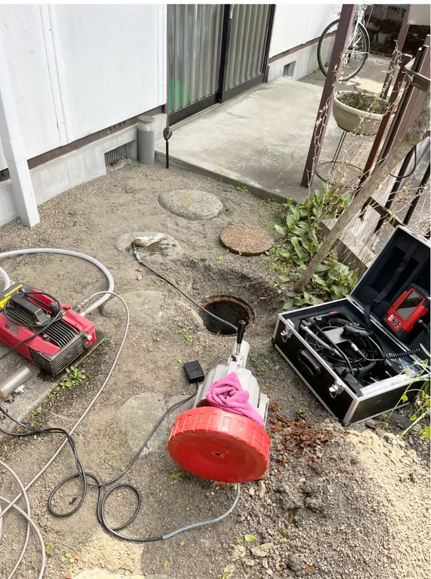 「トイレがつまってしまった」との報告を受け、原因を調査しました。敷地内のマンホール(汚水桝)から水が溢れており、汚水桝の破片やゴミの混入がつまりの原因であることが判明しました。専用機材を使用して配管内を確認し、電動トーラーで砕いてつまりを解消しました。さらに、依頼者の許可を得て高圧洗浄で配管を清掃し、再発防止を図りました。このような対応を2万円程度で提供することが、優良業者の特徴です。