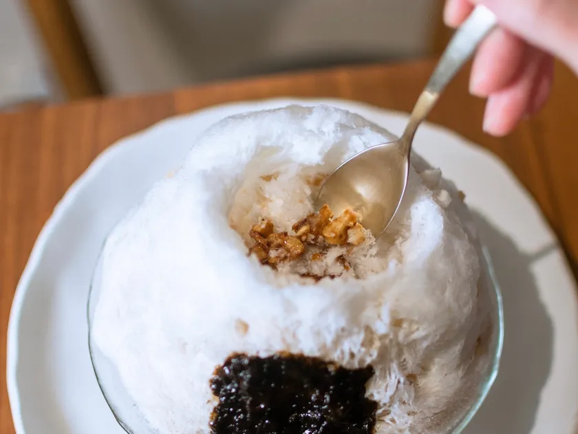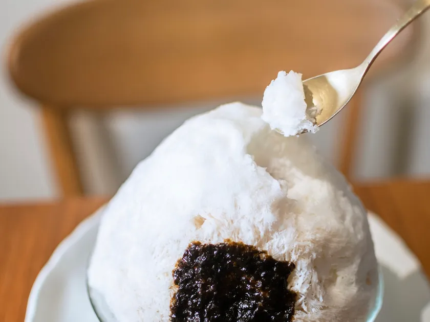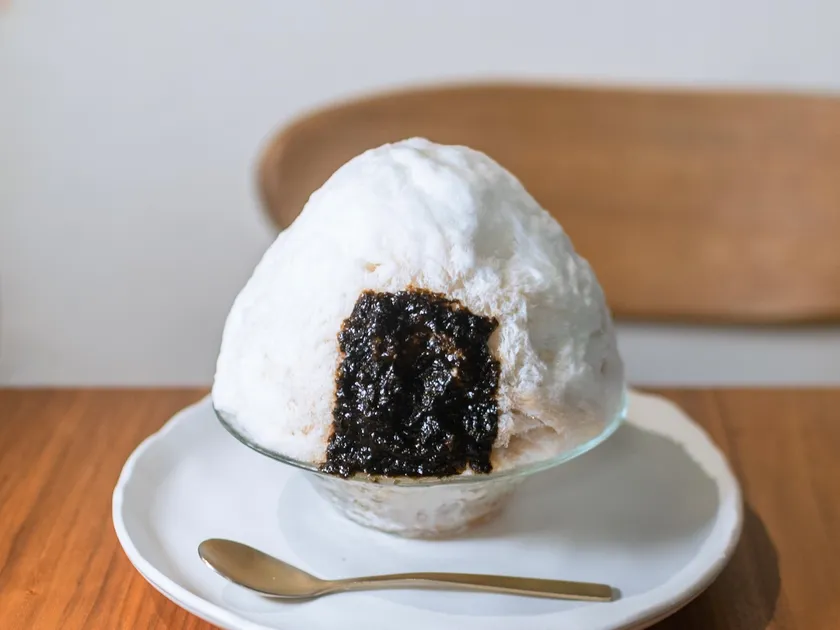 見た目はおにぎりの形をイメージし、ご飯は不使用ですが、食べ進めることでまるで梅のおにぎりを食べているかのような新感覚なかき氷を楽しむことができます。