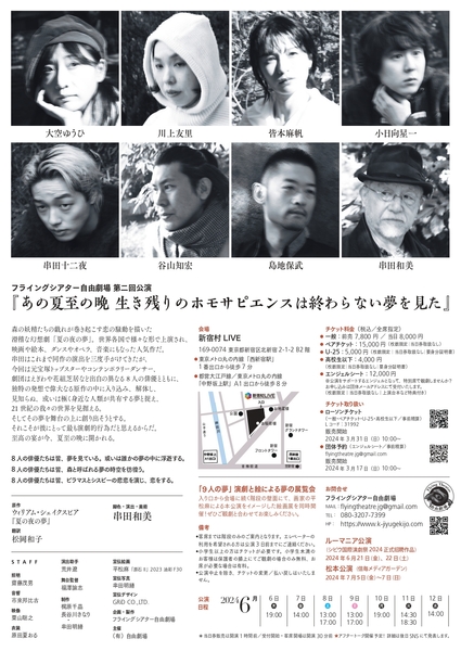 俳優・演出家・舞台美術家の串田和美率いる演劇プロジェクト「フライングシアター自由劇場」の第二作目となる本公演は、Wシェイクスピアの人気作『夏の夜の夢』を、串田の独特の発想のもと、21世紀版に新たに作ります。