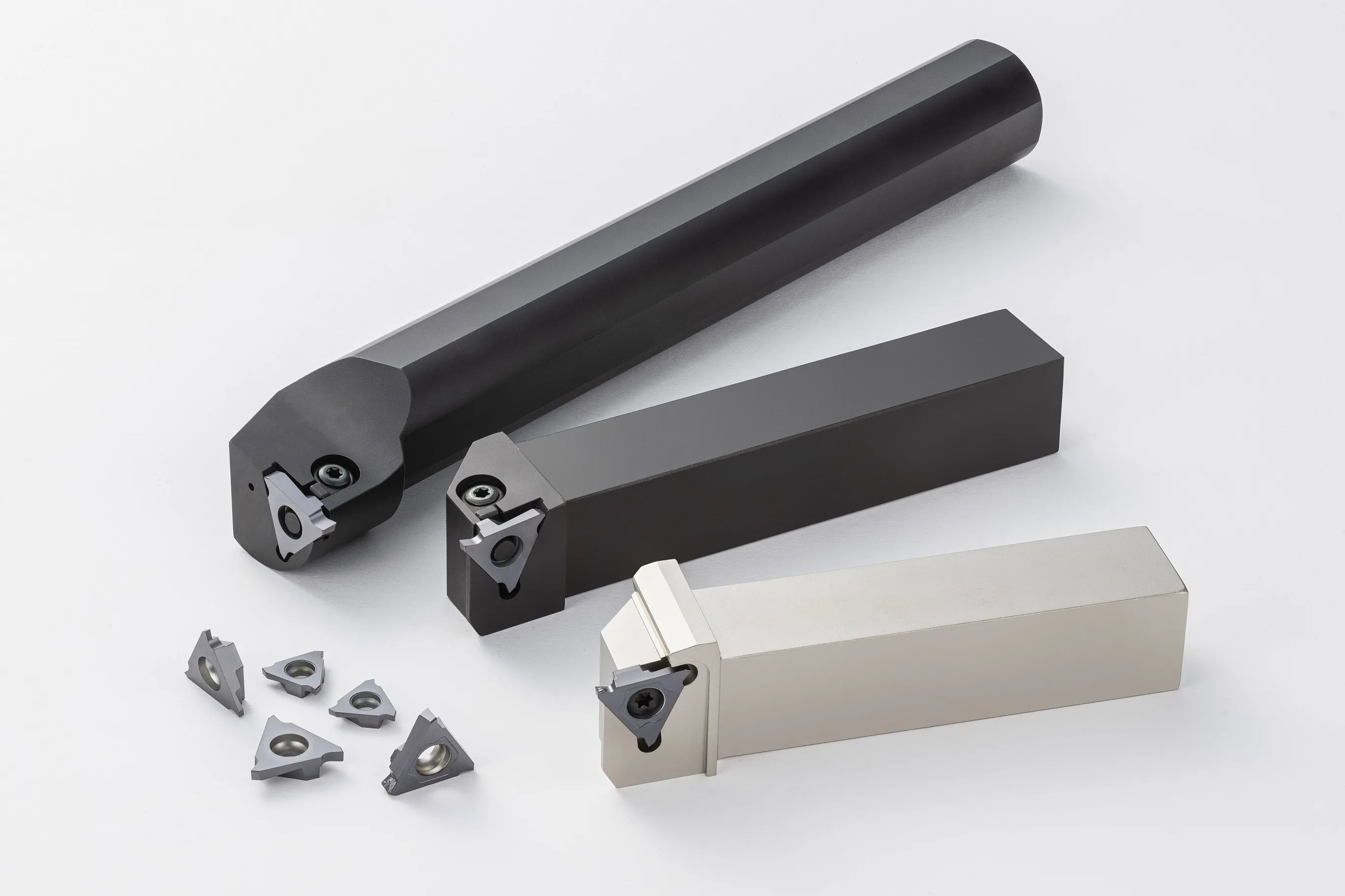 GBAは、加工可能溝深さ5mmまで対応する浅溝入れ加工用工具で、外径用と内径用の2タイプを用意。切りくず処理に優れたGMブレーカや、高圧クーラント対応ホルダをラインアップしており、幅広い溝入れ加工に対応します。