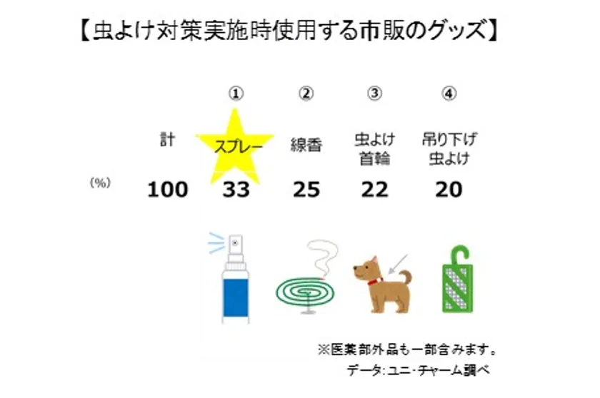 しかしながら、外出機会が増える一方で、夏場になると「いっしょにおでかけしたいけど、不快な虫が気になる」という不安を感じる方がいらっしゃいます。飼育者の87%※1が夏には虫よけ対策を実施されており、主にスプレーや線香などを使用していますが、「スプレーが愛犬にもかかってしまう」「おでかけ時にかさばる」などの不満を持っていることがわかりました。