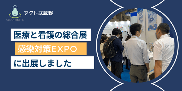 株式会社武蔵野(代表取締役社長:小山昇)は、2021年10月13日(水)から15日(金)に開催された『医療と看護の総合展 感染対策EXPO』にアクト武蔵野として出展しました。ブースでは次亜塩素酸水「クリーン・リフレ」を使った実験やミニスプレーの配布など、実際に商品をブース内でお試しいただきました。今後も「菌やウィルスに感染しない環境作りのアドバイザー」として、新型コロナウィルスだけでなくインフルエンザやノロウイルスなど、感染症の流行に備えて「安心・安全・信頼、そして健康」な生活を皆様へ提供するべく活動していきます。