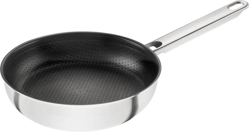 高精度なマイクロメッシュ加工をフライパン全面に施したハニカム構造の特殊加工コーティングは、優しく火を入れて仕上げる魚、野菜、卵料理のほか、肉をこんがり焼き付ける調理にも最適。表面の凹凸により素材の焼き加減を自由自在に調整でき、プロのような仕上がりに。更に、キッチンツールなどの擦れによる耐摩耗性にも強いので、金属製ツールを使用しても使い始めのこびりつきにくさが長く続きます。