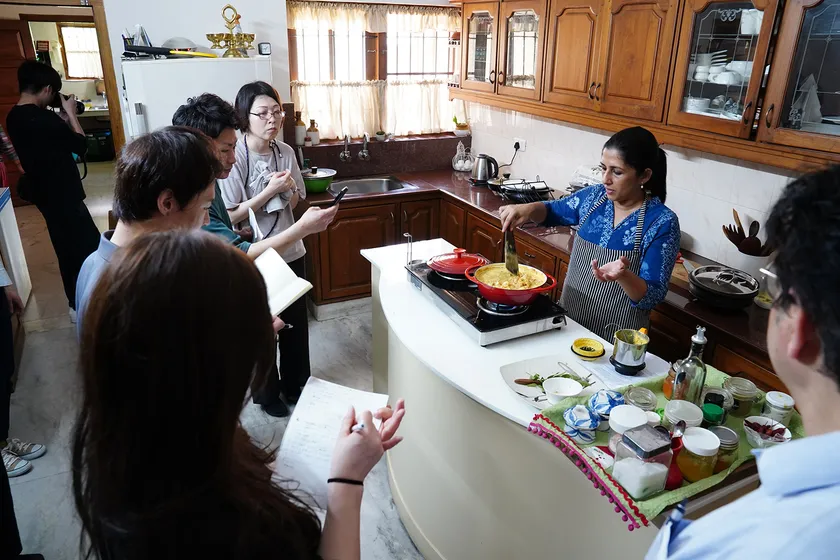 ニシキヤキッチンのインドカレーシリーズ企画のスタートは、「もっとおいしいカレーをつくりたい!」という想いから、「カレーのルーツ、インド料理を極める」ことに定めました。これまで、ニシキヤキッチン商品開発部は、2010年から10年以上かけ、度々インドへ訪問し、レストラン巡りや現地の料理教室に参加するなど、インド料理の勉強を続けてきました。コロナ禍で一時は研修の中止を余儀なくされましたが、現在までに約20回インドへ研修に行き、インド料理の研究を行っております。