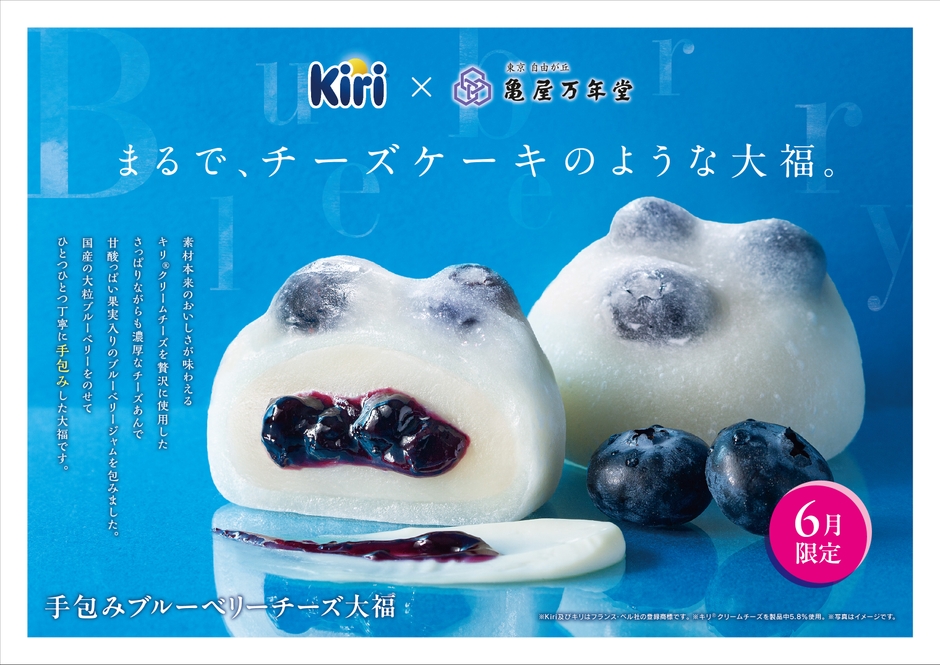 和菓子の新定番「フルーツ大福」と「キリ クリームチーズ」のコラボ『手包みブルーベリーチーズ大福』6月限定販売