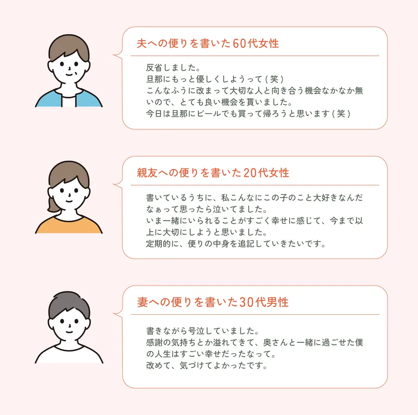 2024年2月にベータ版をリリースし、実際にtayorieで大切な人への便りを書いた方からの感想を一部紹介させていただきます。