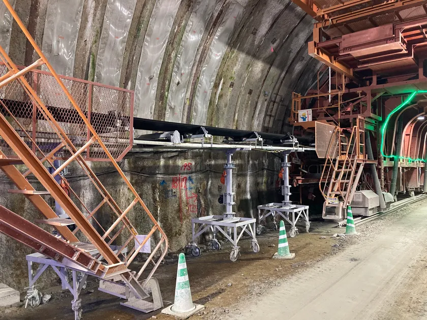 連続ベルトコンベヤ工法における省力化を実現 - 新型テールピース台車による維持管理業務の負荷軽減 -
