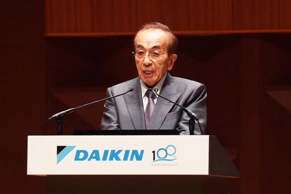 代表取締役社長 兼 CEOの十河政則は「この100年の間、多くの苦難を乗り越えて成長・発展し続けることができた背景には、諸先輩方が築いてきた良き企業文化や競争力の源泉ともいうべき独自の強みがある。この強みを進化させる新たなスタートを切る機会」「ダイキンはこれからも、お客様に喜ばれ、信頼され、そして成長し続ける企業グループとして、環境価値・社会価値をさらに高めて、新たな社会づくりに貢献していく」と今後の成長に向けての決意を述べました。