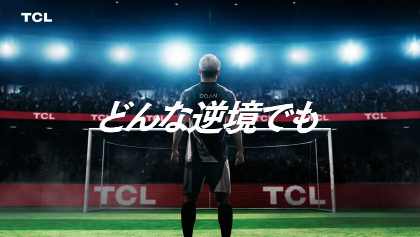 TCLの新しいブランドCMでは、アンバサダーである堂安律選手の逆境に負けない精神が強調されています。CMのストーリーは、堂安選手が重要なPK(ペナルティキック)に臨むシーンから始まります。