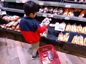 まずはイートインスペースで保護者の方と一緒に「おかいものリスト」を作成し、いざ一人ではじめてのおつかいがスタート!広い売場からお目当ての商品を頑張って探しました。