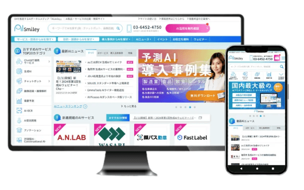 AIsmiley(アイスマイリー)は企業のDXを推進する国内最大級のAIポータルメディアです。人工知能を搭載した製品・サービスの比較や資料請求を無料でご利用いただけます。