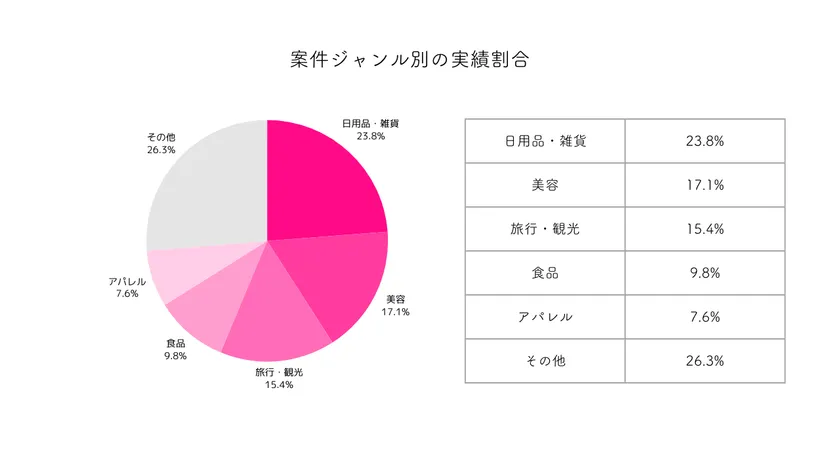 ■登録インフルエンサー・実施したPR案件のジャンル割合は以下のとおりです。