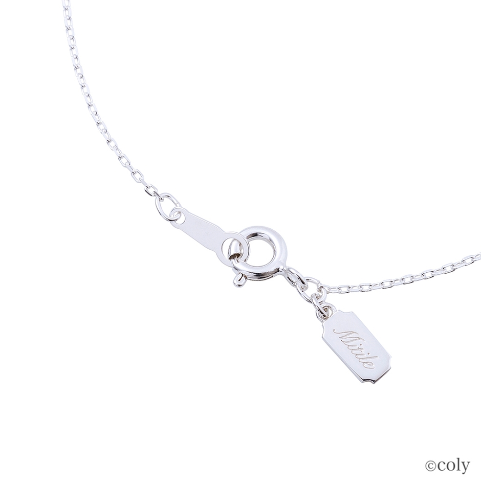 「魔法使いの約束」に登場する南の国の魔法使い、ミチルをイメージしたシルバーネックレスです。衣装の模様とブローチをモチーフにしたデザインに、イメージカラーストーンをセット。エンドチャームのプレートには名前を刻印しました。