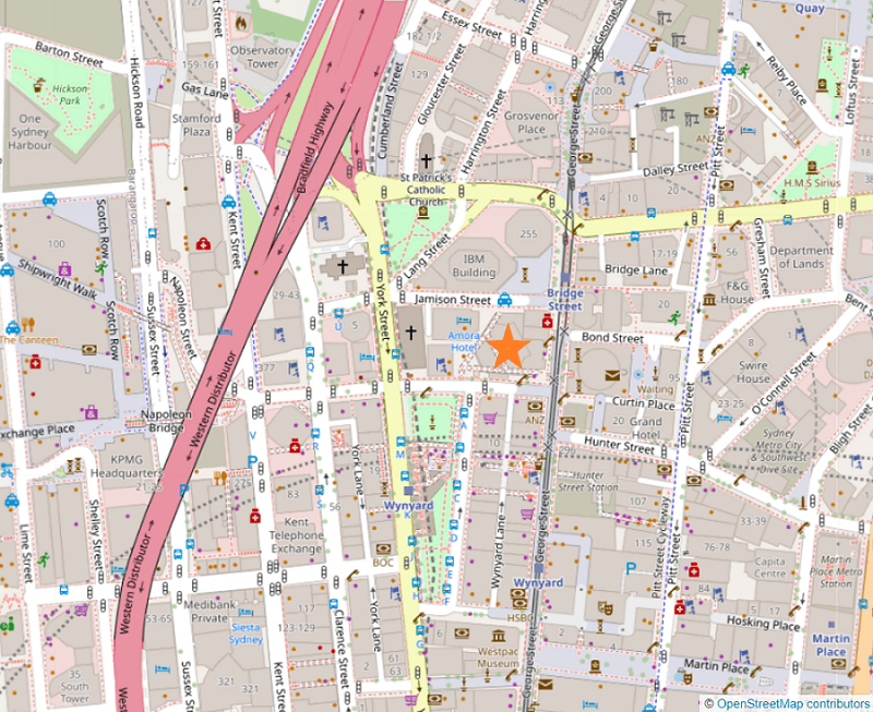 ・シドニー中心部を南北に走るメインストリート「George Streetジョージ ストリート」にも面した立地。