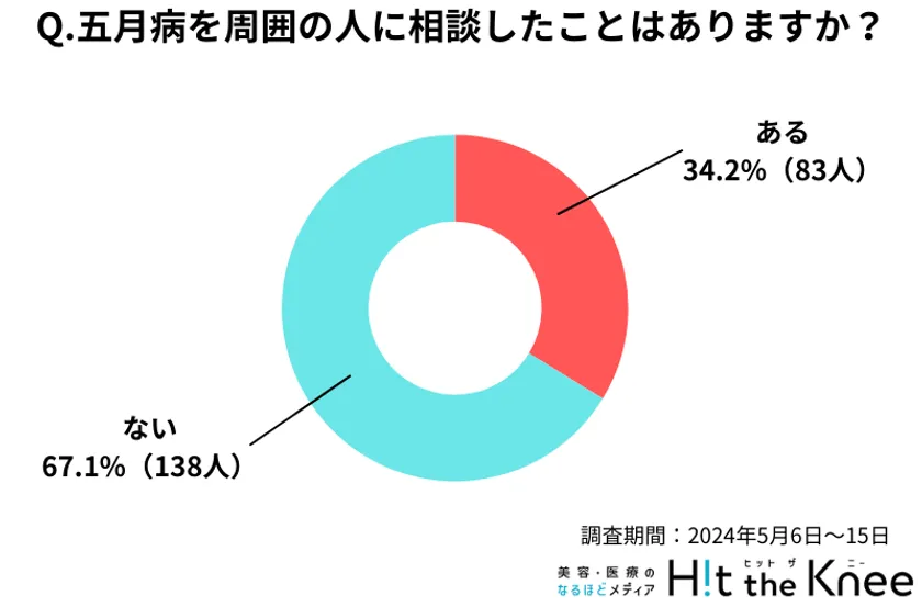 一方で「五月病を周囲の人に相談したことはありますか」と質問したところ、「相談したことはない」が67.1%という結果になりました。