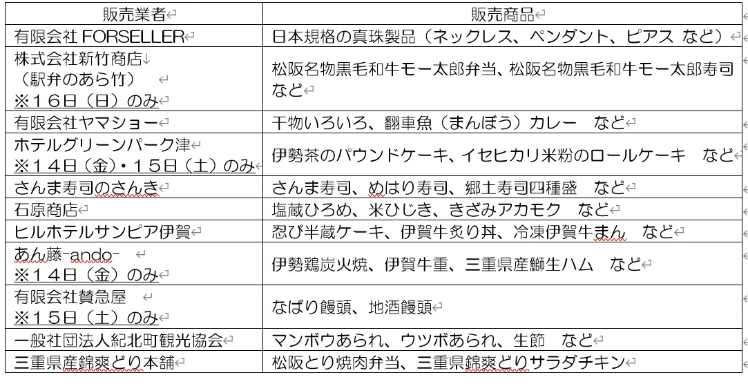 三重県の特産品を販売します。