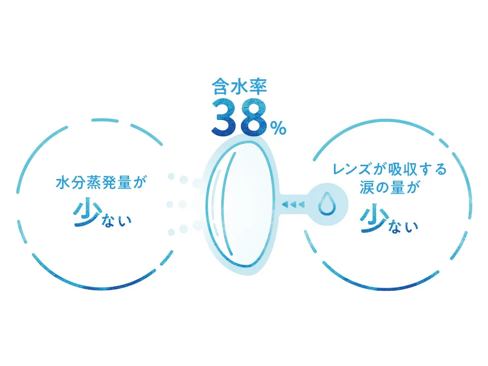 保湿成分配合の高含水レンズ。だから、うるおい続く