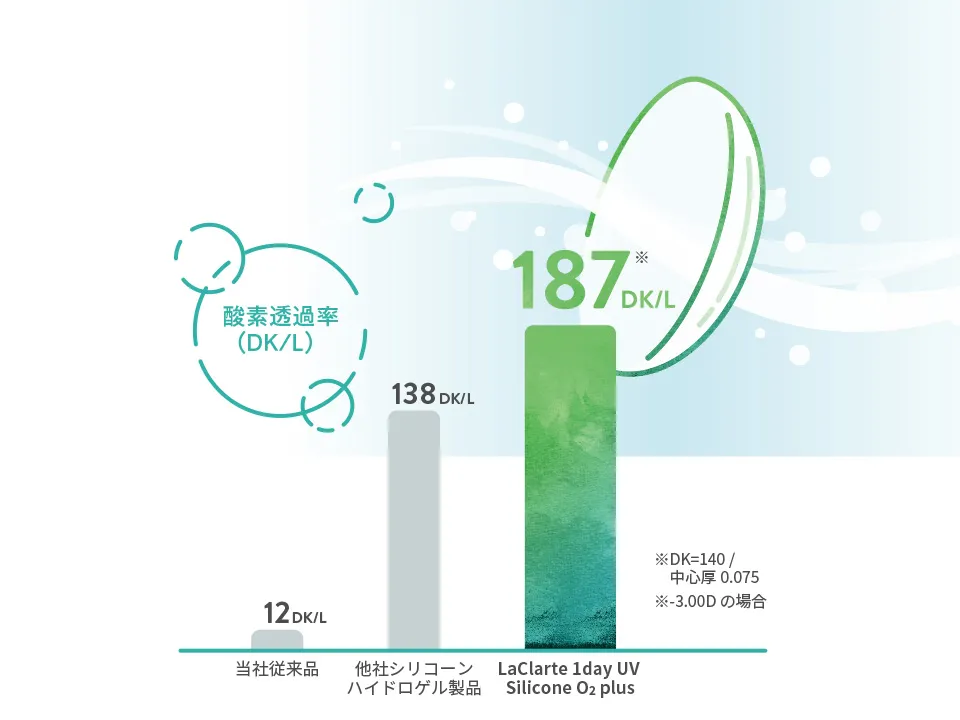 ※2 酸素透過率(Dk/L=187 @-3.00D)による