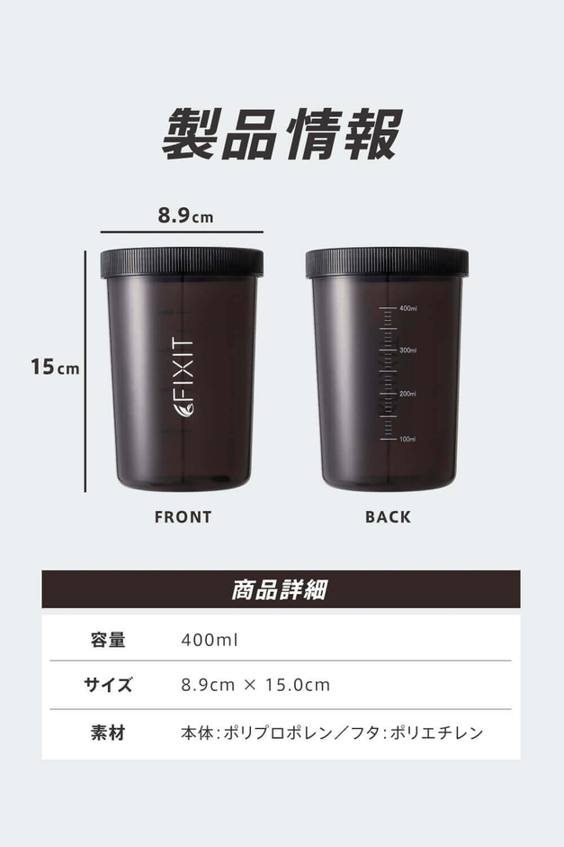「シンプル設計で使いやすい」理想のプロテインシェーカーが登場! FIXITより新発売の『シェーカー400ml【クリアブラック】』