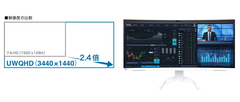 膨大な情報を自由に配置できる34.1型ウルトラワイド大画面